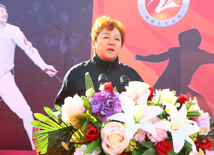 市体育局调研员郝健同志作了精彩致辞。她表示健康是青少年成长、成才的根基,学校体育作为铸造青少年身心健康的主阵地,唯有将体育和教育有机融合,才能让教育的成果更加扎实,希望衡水滨湖志臻中学以及学校击剑队为国家培养更多的栋梁之才!