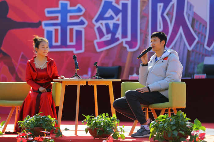 剪彩仪式结束后,雷声教练又接受了我们的专题访谈,讲述了他的击剑生涯以及成长道路上的点点滴滴。世界冠军,武学标榜,作为世界冠军的雷声,他的成功之路也并非一帆风顺,但是他一直坚信只要努力,不管结局如何自己都是最棒的,一分耕耘,一份收获。人若有志,万事可为。听了雷声教练的分享,同学们受益匪浅,对未来信心十足。