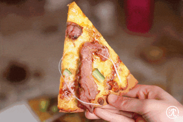 刚出炉的披萨,咬一口酥脆饼底,把披萨往后一扯,长长的芝士拉丝,带着浓郁的奶香味。卷进嘴里之后,超满足!超幸福!