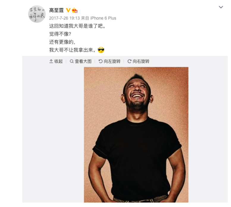好家伙,敢情高至霆这硬汉的小生气质还要源于肤色了?说实话,还确实是。高至霆出道的时候因为很喜欢姜文,就在自己微博里发过姜文的照片。
