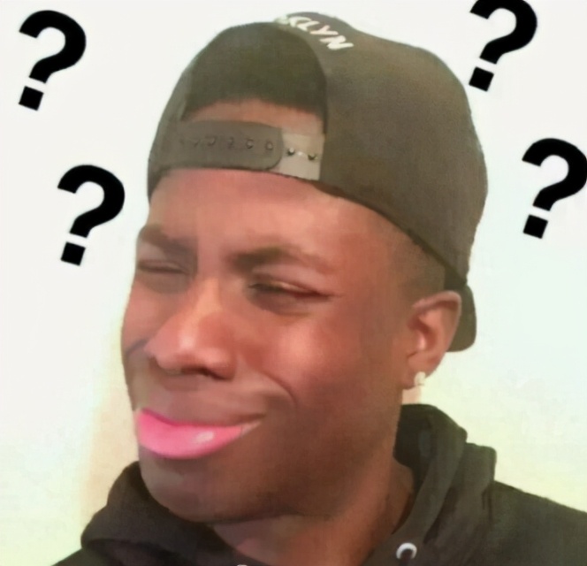 之后这个表情包再次走红网络,成为大家最爱的表情包之一又要归功于另一位网红黑人小哥,这哥儿们唇红齿白跟肤色形成好大的反差对比,相较于质疑这位兄弟的表情包又多了一点“懵逼”。