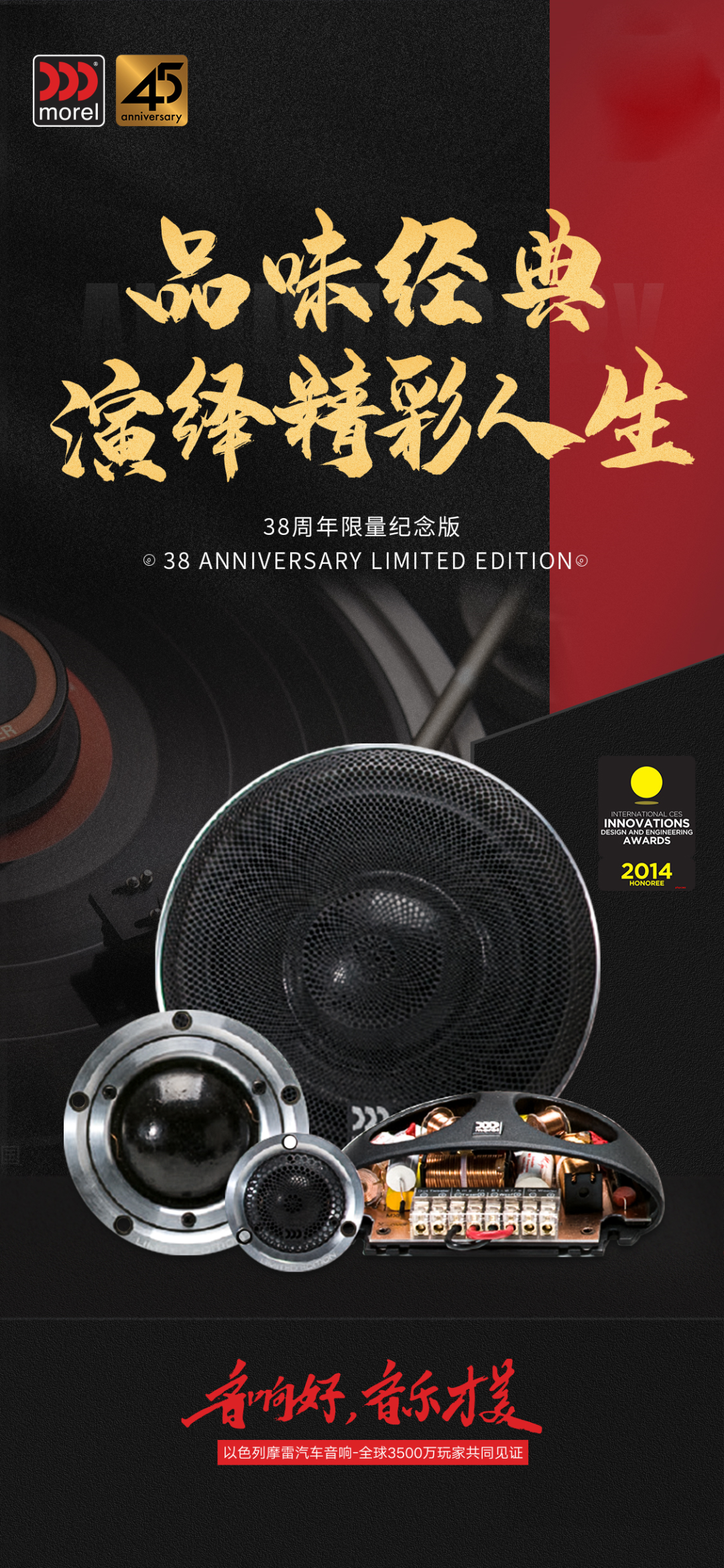 摩雷38周年纪念版堪称摩雷的巅峰之作,荣获“2014年度CES创新设计与工程大奖”,它的诞生标志着高端汽车音响已进入到一个新的时代!