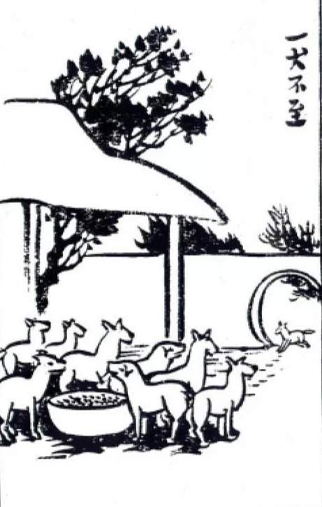 宋太宗赵光义听后不信,御驾亲临,带来一百个肉包子,放到百犬槽内,群犬呼而相聚,齐齐叩谢皇恩。叩毕,一条白犬步至槽前,口叨两个肉包子,旁若无物地跑走了。太宗惊奇,率众人尾随其后,只见在一处柴扉旁,卧着一条黄犬,好像生病的样子,白犬将叨来的两个包子给它一个,自己留下一个食了。其它的犬各自只食一个,决不不抢占。