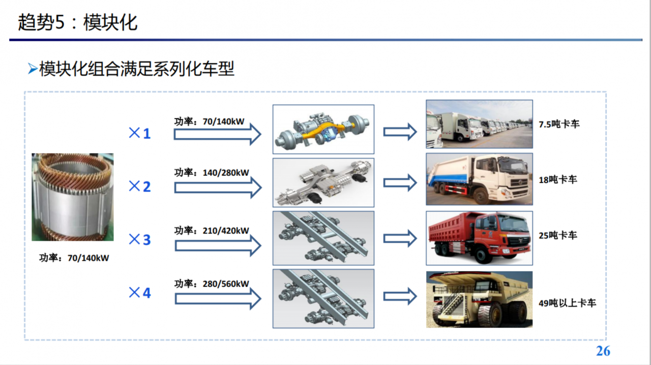 2、电驱动总成技术路线百花齐放,日益结合具体车型、应用场景。