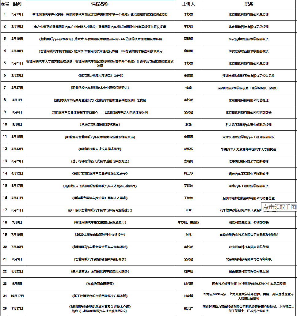 同时为持续深入推进智能网联汽车技术相关专业建设与人才培养,和绪直播间将开启公开课回放,如果您有列表中课程的回放需求,请联系工作人员。