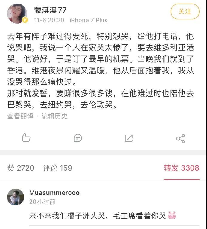 在维多利亚港吹风泪会吹干,不如来橘子洲头让毛主席看着哭。