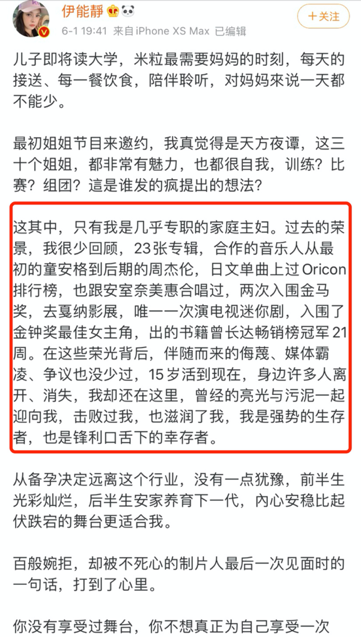 一边说跟三十位姐姐比自己只是位家庭主妇,一边又洋洋洒洒几百字,用着轻描淡写的语气列举了自己的各项荣光。