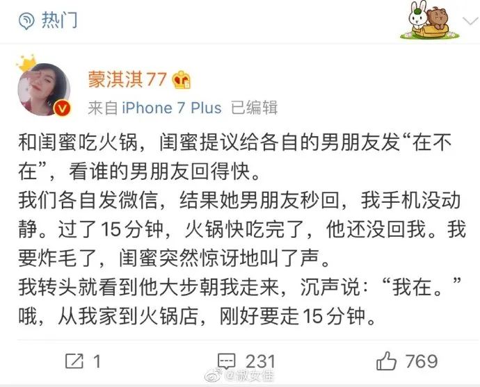跟闺蜜吃火锅时,微信男朋友在不,15分钟后,男朋友出现在了自己面前。