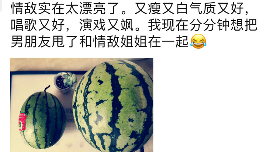 夸情敌漂亮,想甩了男朋友和情敌在一起,实则衬托自己。
