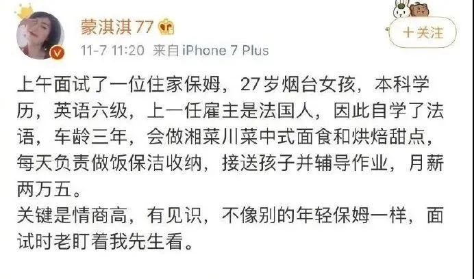 精通英法双语、会做八大菜系的本科学历要去她家做保姆,面试通过的重要原因是没有老盯着他老公看。