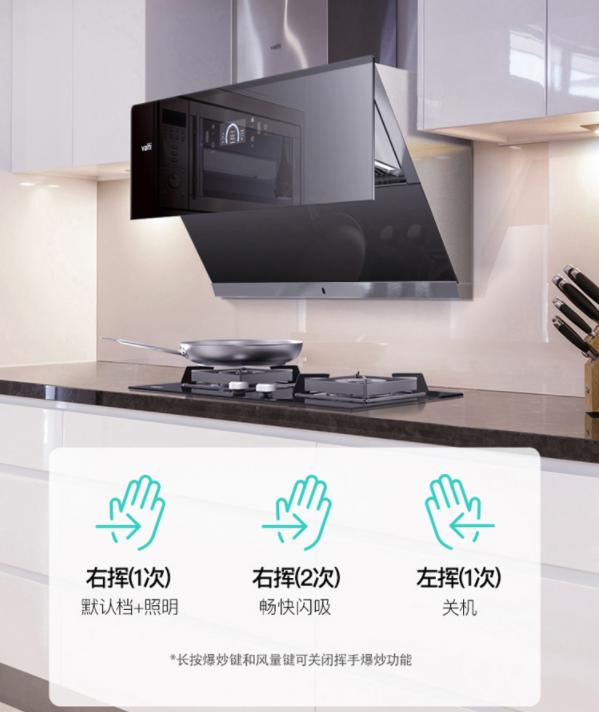 同时,华帝天穹油烟机i11116搭载有智能体感操控系统,只需简单挥手,就能实现科技感满满的隔空操作,油烟机乖乖听话,智能调节用户所需要的操作。这样在使用时就能尽量避免油污粘到油烟机上,减少清洁烦恼,还能享受到新鲜有趣的烹饪体验。