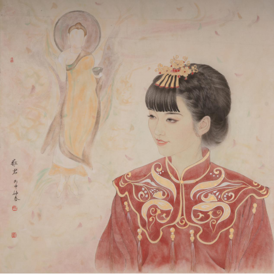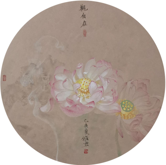张雅君虽是花信年华却早已是画坛小有名气的小才女,多幅作品均被美术馆及个人收藏,她却不着于此。在这灯红酒绿的商业社会,于今浮躁奢靡的浮华俗尘中自得一方清净,固守那份恬淡、古雅、与清婉。正如那句“上善若水,水善利万物而不争”不争即是淡定,淡定则易平顺。恃才不骄,而独享其乐;居高不傲,而甘平淡。知书达理,理通则生慧,雅君对人生的慧悟超出了她的年龄与性别。《如来》、《硕果》、《看取莲花净,应知不染心》画作中尽现禅宗佛道之妙境,于人生佛学慧海中明心见性揭示生命真谛,也体现了她对人生苦乐得失的透彻悟修,及通达睿智的思索!