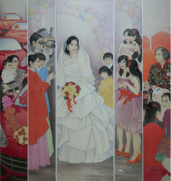 张雅君 张相三合作《女大当嫁》国画工笔绢本175×185cm