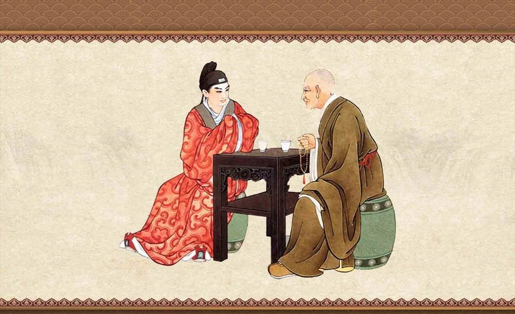 有父子俱性刚,不肯让人。一日父留客饮,遣子入城市肉。子取肉回,将出城门,值一人对面而来,各不相让,遂挺立良久。父寻至见之,谓子曰:“汝姑持肉回,陪客饭。待我与其对立在此。”——《明清笑话集》
