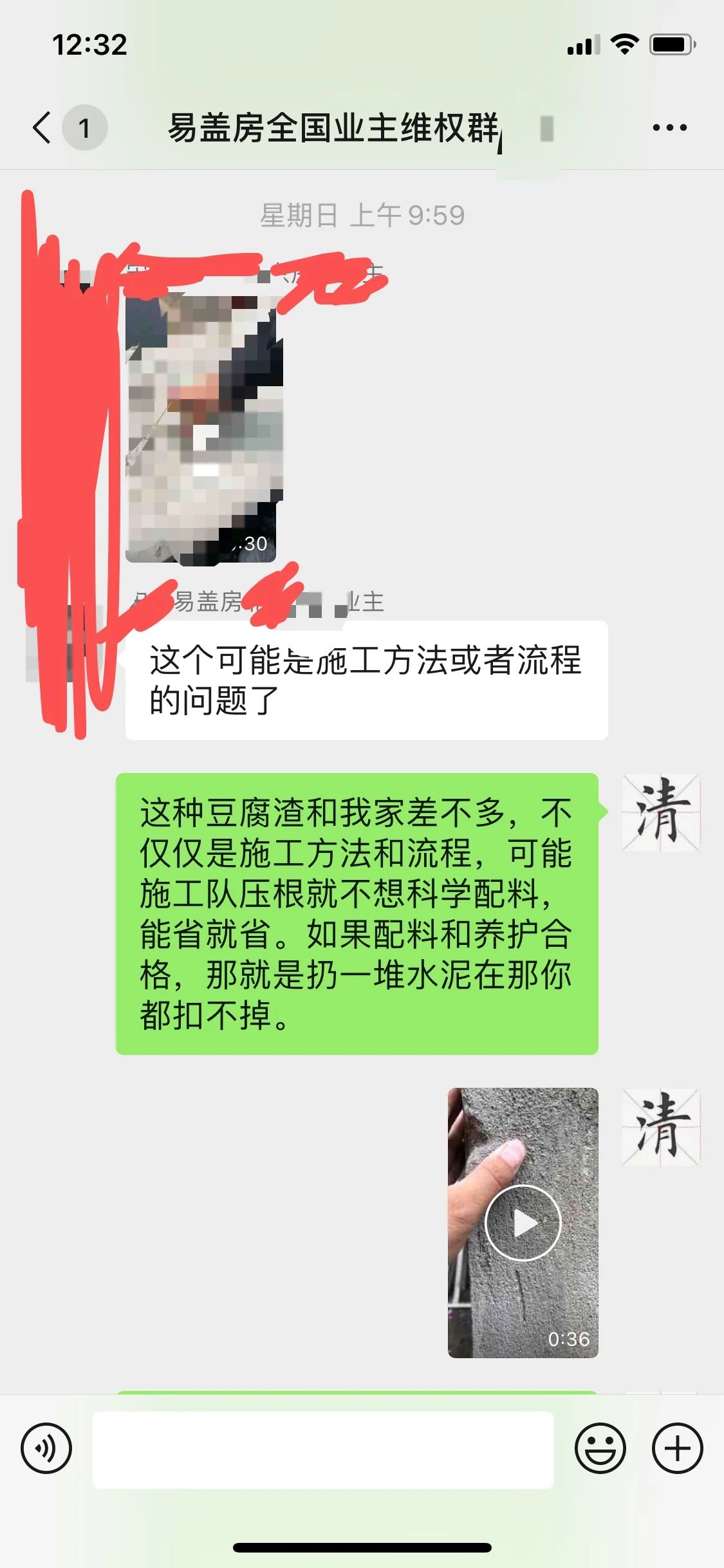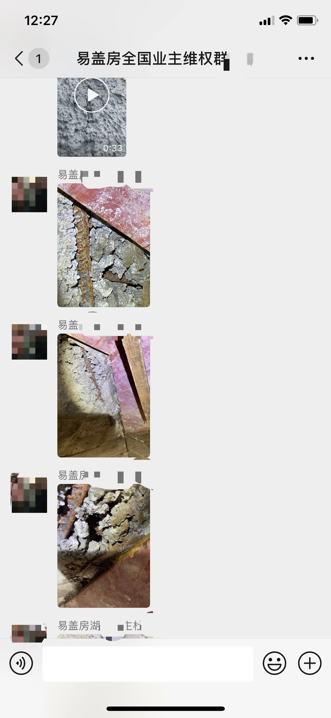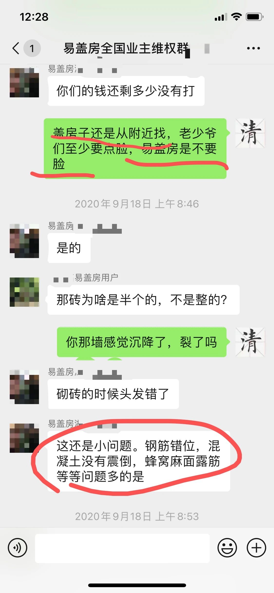 上图就是他进群打招呼和他家房子的情况,我们可以看到,房子严重的质量问题和安全隐患,和阜阳房子一样,东倒西歪,上下安全柱子都不对正。就这样情况下,易盖房不但不提供解决,还威胁这个业主,如果不继续付尾款,给你停工,并要起诉这个业主,我的天哪!