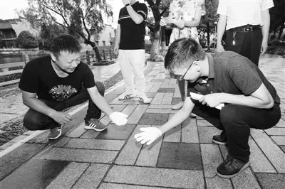 考核员用白手套检查“席地而坐”效果