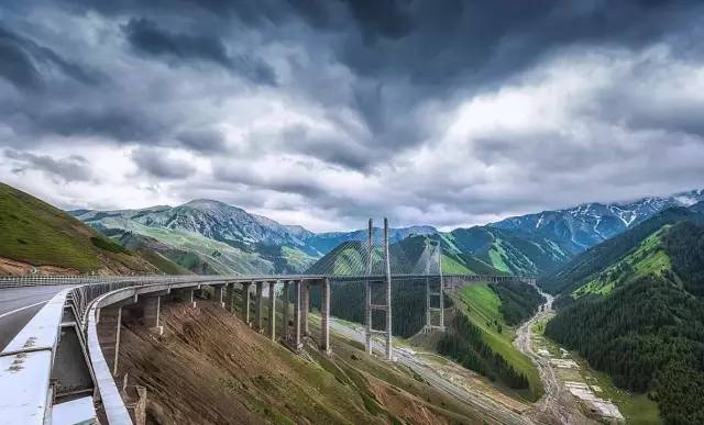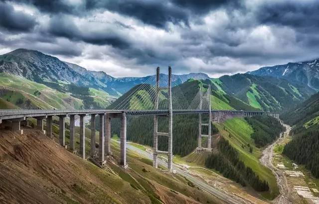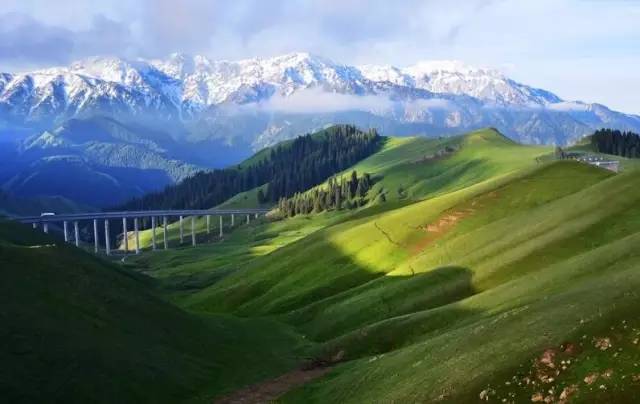 与国内大多数穿行在密集的城市森林或行走在偏远的环省环城边缘地带的高速公路不同,赛果高速是一条穿行在高山湖泊花溪、雪岭云杉林海、七彩野果沟谷等多彩风景区,平均海拔在1500米左右的天山翠谷高速公路。