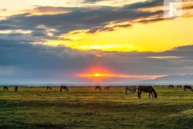 昭苏马场,曾是全国最大的军马场,也曾是策马下天山的骑兵摇篮。如今,这里是伊犁最好的马场之一。一望无际的茫茫草原,牛羊如白云般,一朵朵,一群群,绣在青绿的草原上。一扬鞭,成千上万的伊犁“天马”奔腾而起,蔚为壮观。