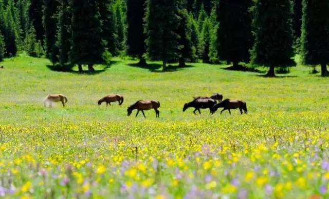 从赛里木湖出发,直到巴音布鲁克大草原,沿着伊犁河谷一路向东,花海、溪流、草原、湿地、原始丛林……