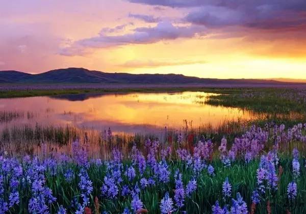 紫色的小花开满整个山坡,随着地势的起伏,将紫色延伸出去,就感觉到天地万物都泛着紫光。