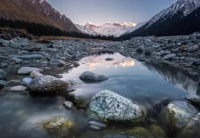 在伊犁,没有比她更为冷峻、清明的水了。无论身边走过多少繁华和喧嚣,她总是以静默的姿态等待着一个故事,碧波之下与岁月磨砺了千万年的石子依然在沉睡。还有与她长年相伴的雪山青松,夏季盛开的缤纷繁花,都能够直达你的心底,震撼你的视觉。