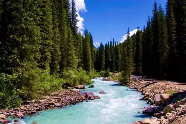 走在夏塔大峡谷里,除了风吹松林的声音,便是夏塔河水的奔腾声。这条由天山雪水融化而成的河流,夹杂着沿途冲刷而下的岩石粉末,阳光照射之下,像牛奶一样,涓涓流过。河中还会看到一处“神龟石”,静静躺在河水中,传说它便是唐僧师徒在通天河遇到的老龟。