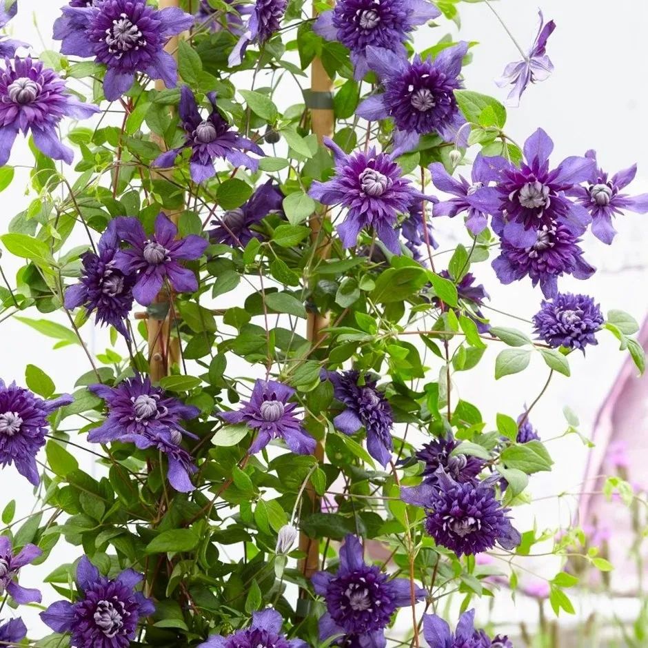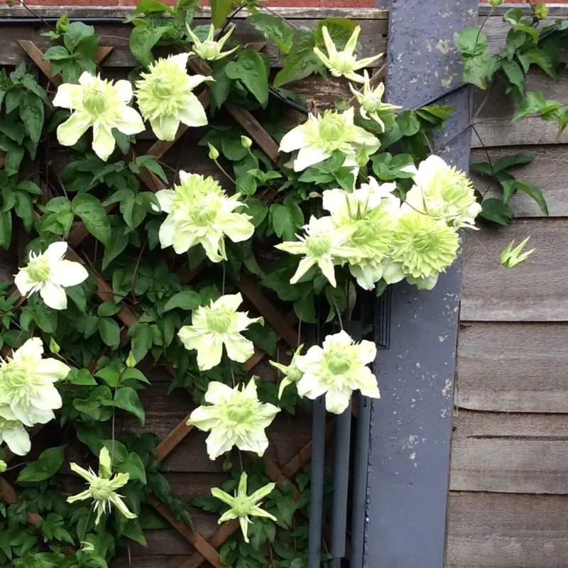 铁线莲是被誉为藤本皇后的观赏植物,有很多品种都可以布置成小花墙,无论是盆栽养护还是地栽养护都是很不错的,适合布置花墙的品种就包括水晶喷泉、里昂村庄、绿玉和钻石等。