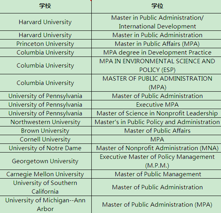 7. 美国top30MPA开设院校汇总