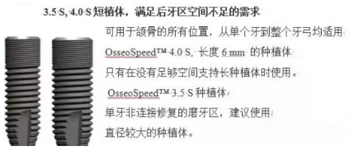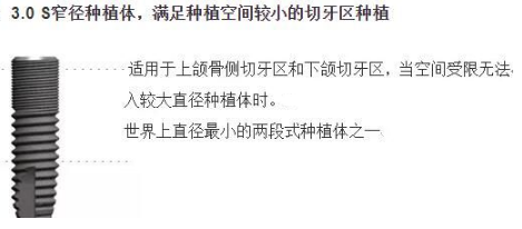 是少数含有3.0直径分体式种植体,为解决牙槽嵴窄小,骨量不足的病例带来理想的解决方案,高度6.5的种植体,对于牙槽骨高度不够的病例带来理想的解决方案。