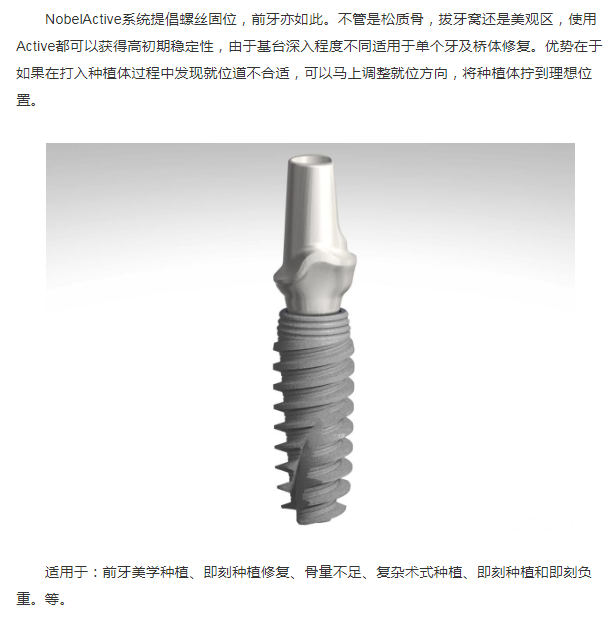 型号主要分为——主要有NobelActive、NobelPCC、NobelReplace三种型号。