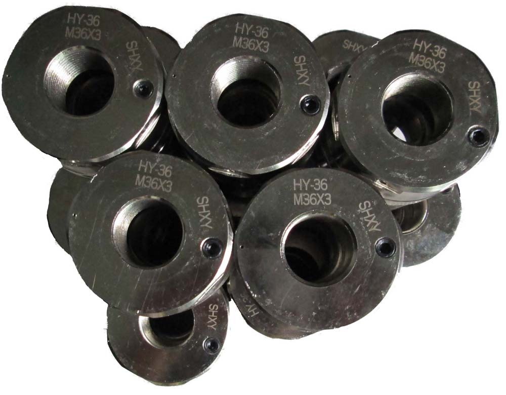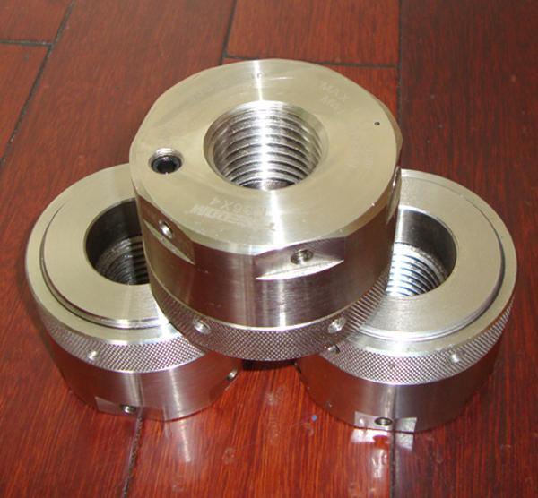 4、螺母在没有旋进工件锁紧前,请不要给螺母加压,防止压环偏载脱出,在不使用时请将螺母内的油放净,压环回到原始位置,以备下次使用。在螺纹处加黄油防止生锈。
