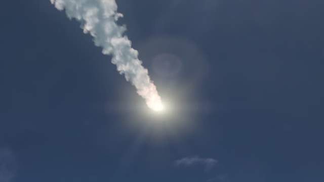 从上面被放慢处理的动图中我们能够看到,在陨石下落的过程中,一个高速飞行的物体追从后面上了陨石,在将它击穿并使其爆炸之后,这个神秘的物体扬长而去。