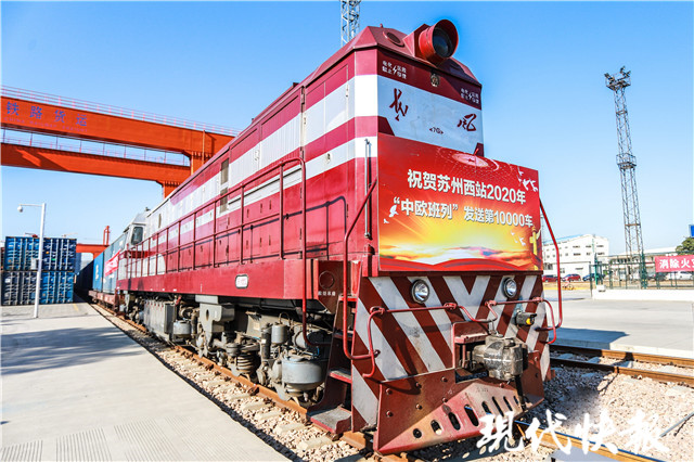 现代快报讯(通讯员 许文峰 林晓晨 记者 刘伟娟)现代快报记者从中国铁路上海局集团有限公司获悉,11月13日,载有100个标箱出口货物的X8402次列车从铁路苏州西站鸣笛启程,驶向德国第二大城市汉堡,标志着苏州中欧班列今年以来装车量突破10000车。