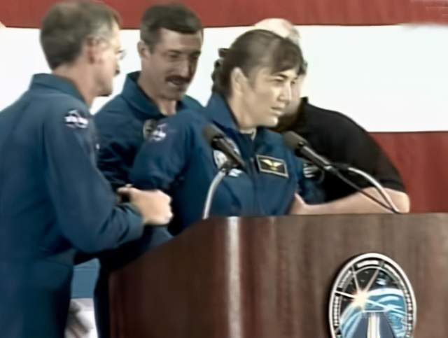 任务结束,六位宇航员回到了地球,并按照常规流程召开了本次任务的记者发布会。每位宇航员都要上台进行简单的回顾和总结。
