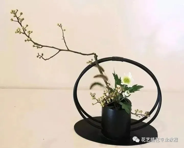 ◆平出型花材选用枝干弯曲柔软的枝条。