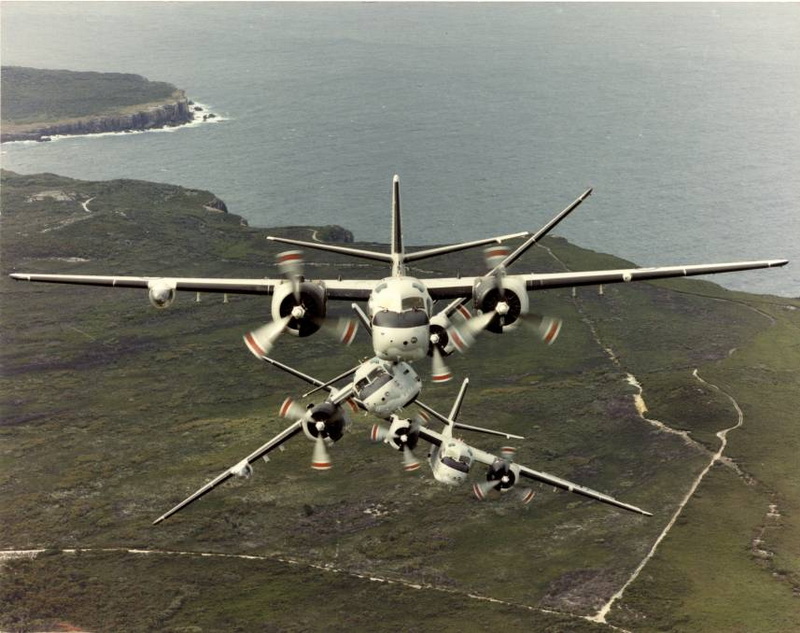 C-1舰载运输机,没有探照灯和雷达等设备,机身侧面有额外的舷窗