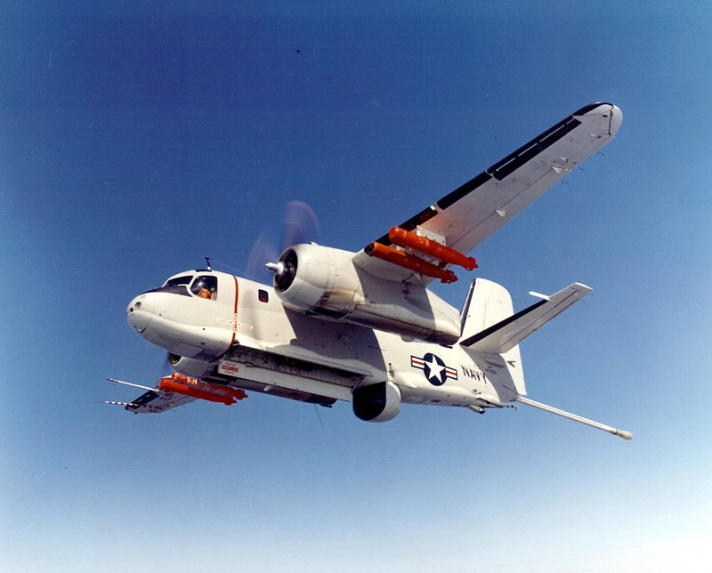 着舰中的S-2,航母起降过程中天窗打开以便出事时飞行员能快速逃生