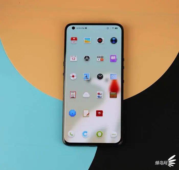 坚果R2正面采用微曲单挖孔屏,尺寸为6.67英寸,采用AMOLED 材质,分辨率为2340×1080 ,亮度为 500nit,最高亮度 800nit,支持 90Hz 刷屏率以及 180Hz 触控采样率。值得注意的是,尽管采用了曲面屏,但曲率很低,正面视觉观感趋近于直屏。并且听筒出音孔方向为顶部,让坚果R2上、下、左、右四个边框几乎等宽,观感十分和谐。
