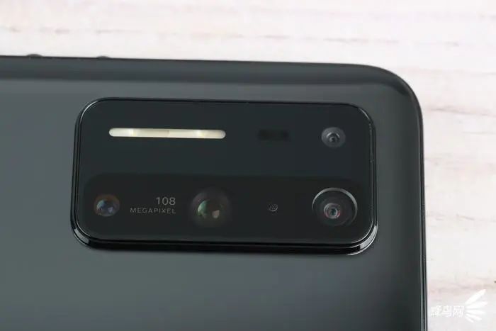 后置相机采用主摄+超广角+长焦+微距的四摄组合,并配置了激光对焦模块,能实现更好更快的对焦效果,并配置了高显色指数双补光灯;其中主摄为三星 ISOCELL Bright HMX,像素高达1.08 亿,尺寸为1/1.33 英寸,单位像素面积为0.8μm,支持光学防抖。超广角镜头为 1300 万像素,最大视角 119.7°,开启防畸变后视角会有所降低;长焦镜头为 800 万像素,支持 3 倍光学无损变焦,最高支持30倍数码变焦;另外一颗为 500 万像素的微距镜头。