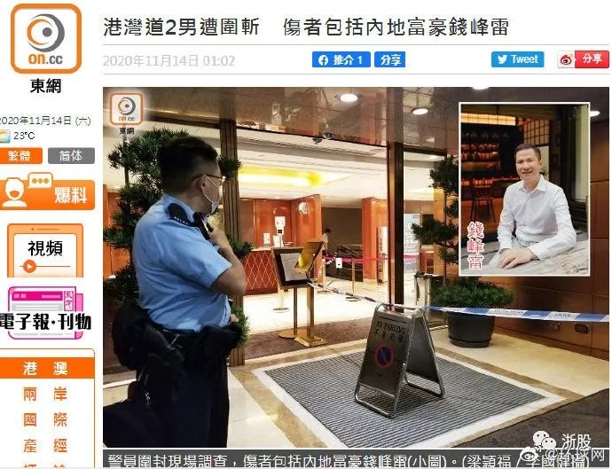 马云好友、宁波著名商人、浙江恒峰国际控股有限公司董事长钱峰雷,今日在香港不幸遇袭。