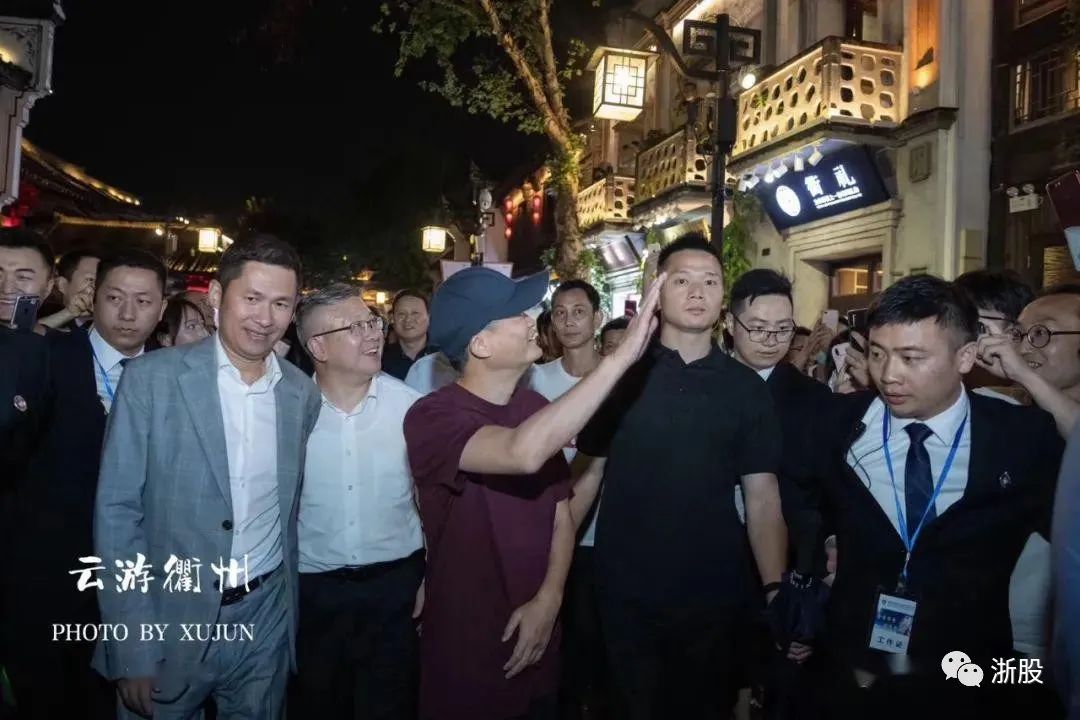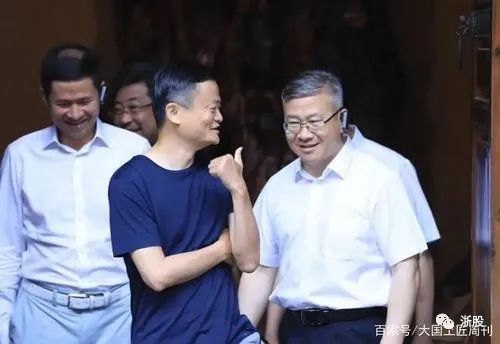 钱峰雷全程陪同,与衢州市委书记徐文光一左一右——徐文光曾任阿里巴巴总部所在地杭州市余杭区委书记,与马云私交甚笃。