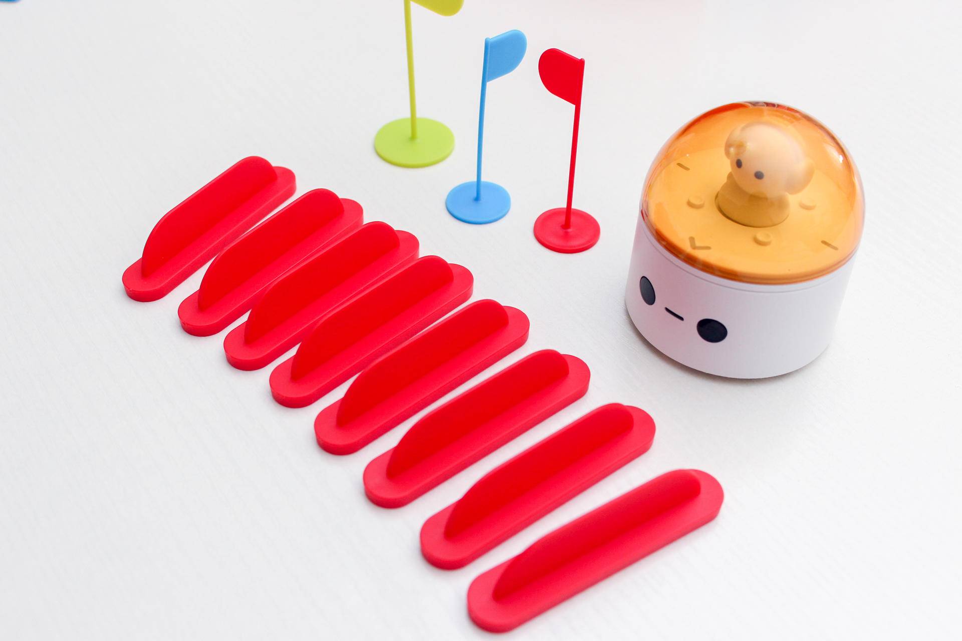 包装内的障碍物和小旗主要是配合机器人使用的,有了这些配件可以设计不同的路径,鼓励孩子通过编程实现路径的行进。