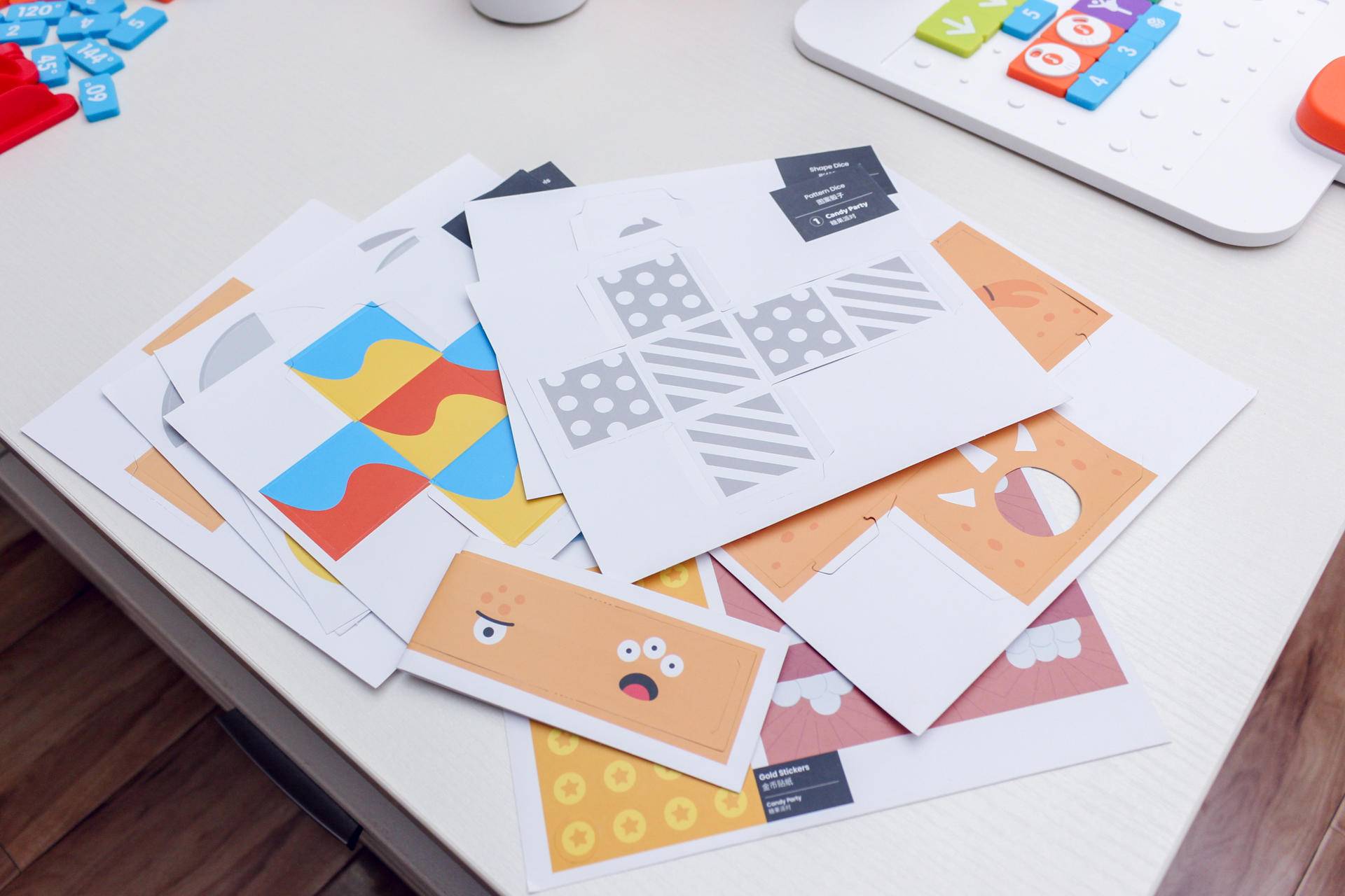 另外包装内还配有非常多的贴纸,每一个情景下不光有编程的游戏,在前面部分还会有一些其他小游戏,有一些会用贴纸来完成。