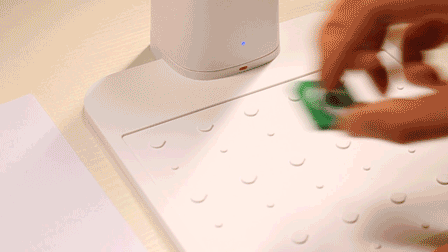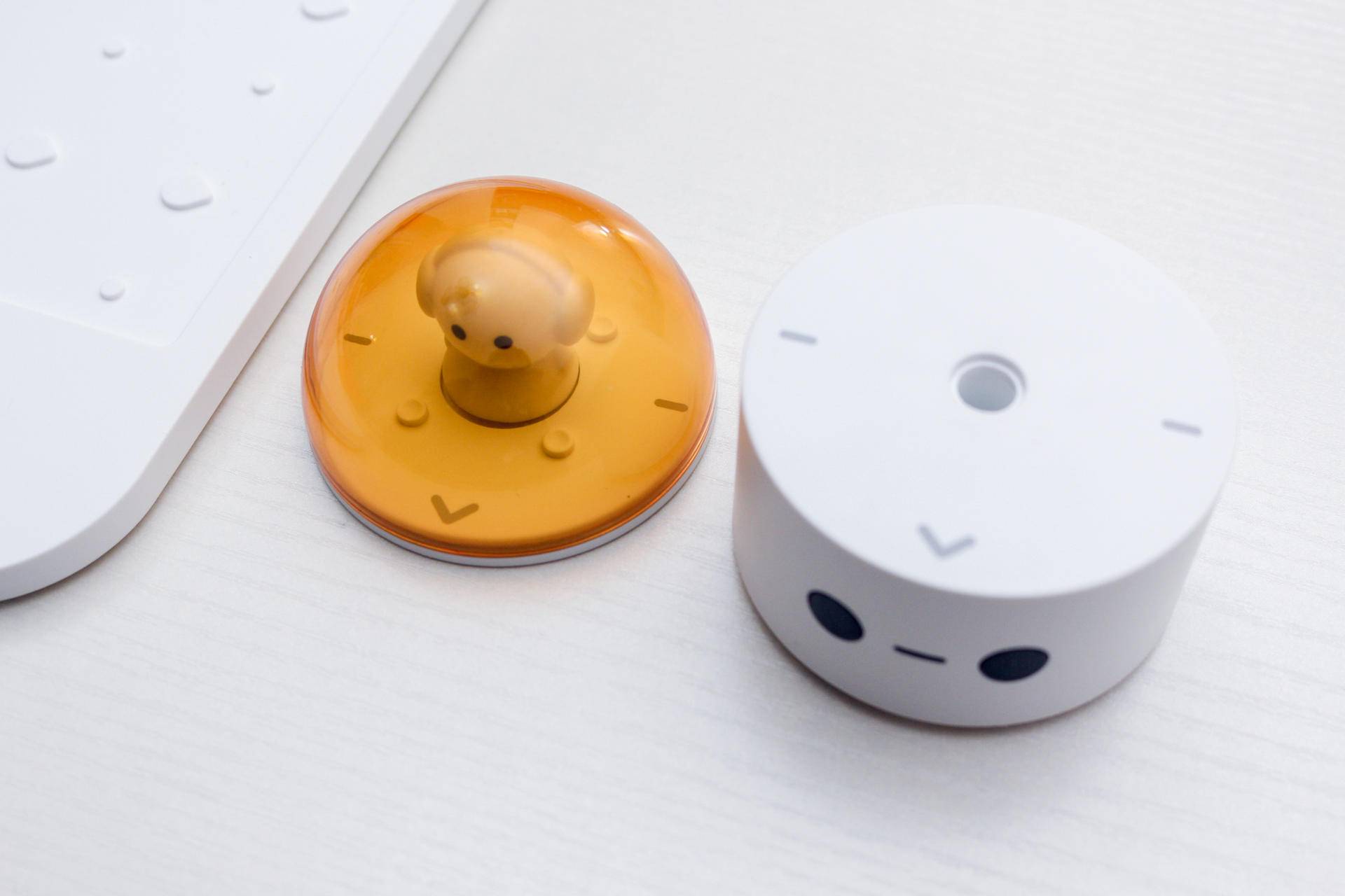 这个玛塔控制塔设计灵感来自于灯塔,高高的灯塔上有个白色可爱小人,下方的圆形橘色凸起是一个摄像头。将玛塔控制塔放在编程板上,摄像头就能将程序发送到玛塔机器人上,实现对机器人的控制。