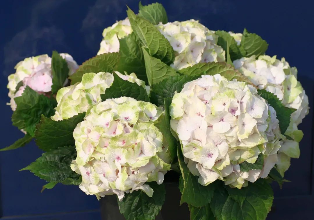在夏天可以将盆栽绣球花养在一个稍微遮荫通风一点的地方,如果是地栽养护的绣球,则可以给它们拉上遮阳网,就可以避免被晒伤。
