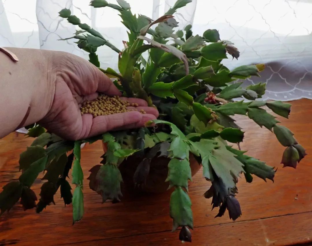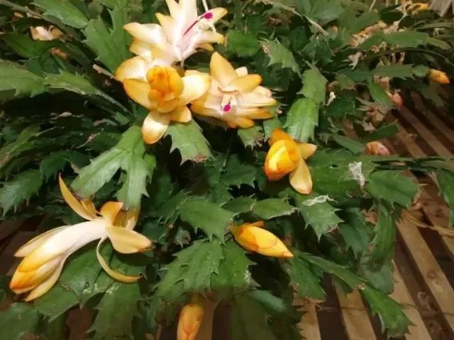 特别是叶子发皱蟹爪兰,要给一些氮磷钾平均的肥料,主要就是为了让叶子长得饱满,蟹爪兰的叶子干瘪,就是由于缺乏养分了,可以先检查根系情况,容器底部是否有长新的白色毛细根,给它补充一些三元复合肥,如果植株的状态长得比较弱,可以先用较低的浓度,比如2000倍。