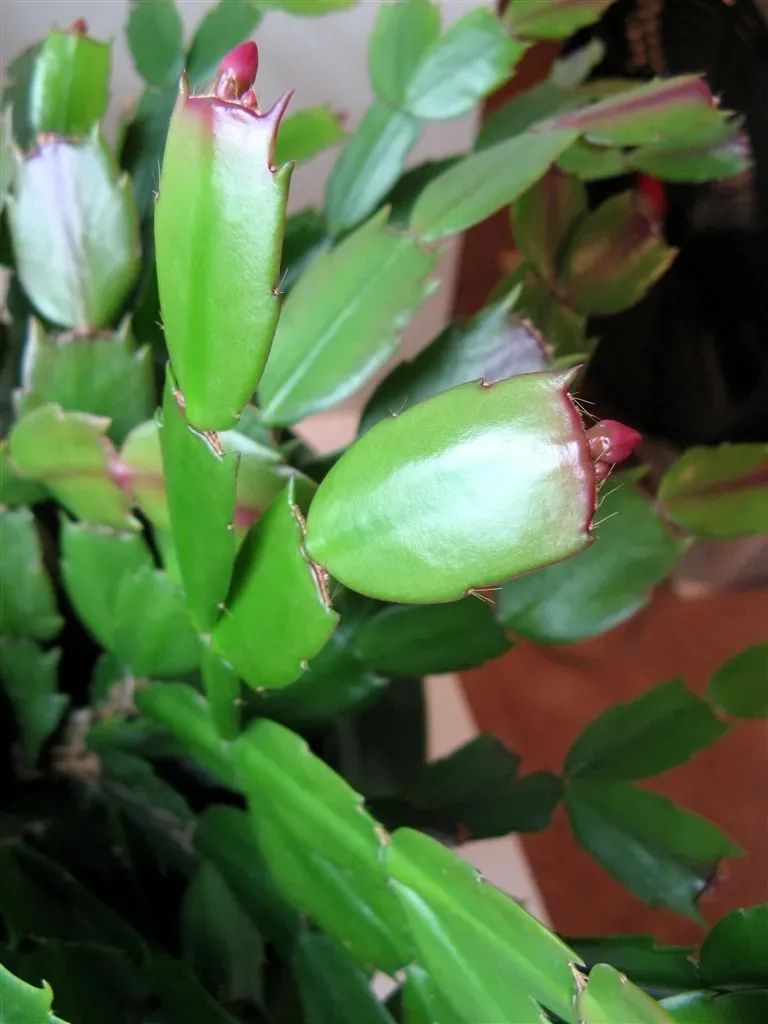 就比如白天的温度在20度左右,夜晚的温度降到10度左右(注意温度不要过低),那对蟹爪兰的花芽形成就非常有利,甚至会让它的叶片边缘显现出红色的锦边。
