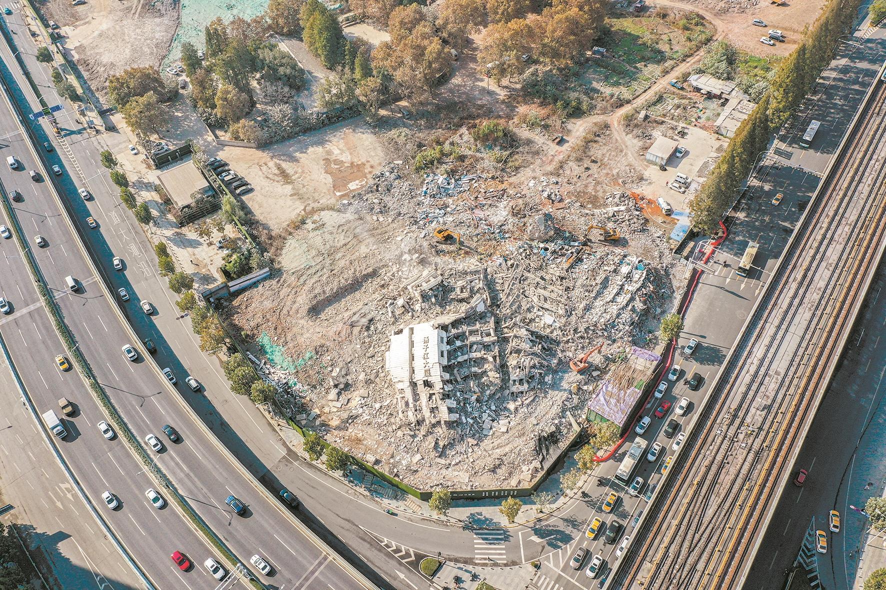 昨日上午,楚天都市报记者现场看到,太平洋大厦变成了占地1000余平方米的废墟,周边的交通管制已经取消,交通恢复正常。几台挖掘机正在废墟中清理钢筋等杂物,几名工人在一旁洒水降尘。