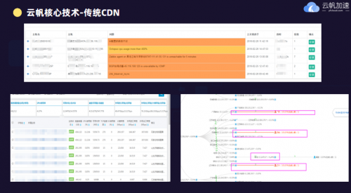截至目前,云帆核心技术主要表现在传统CDN和边缘计算CDN这两部分:在传统CDN领域,云帆拥有自研发CDN系统(定制文件系统、cache系统、协议优化、定制化业务语音);精细化运营(精准分层调度、大数据监测、流量控制)以及智能化运维的全方位监控,自动化节点管理。