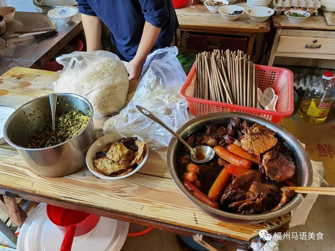 也是第一次吃到肉菜面,先喝一口汤,惊奇,汤鲜的不行,固然有味精的功劳,但更多的是目鱼干,宁德靠海吃海,这一碗十元的面除了这么多肉臊子,还有好多目鱼干,在福州,你卖个18元要排队吃。